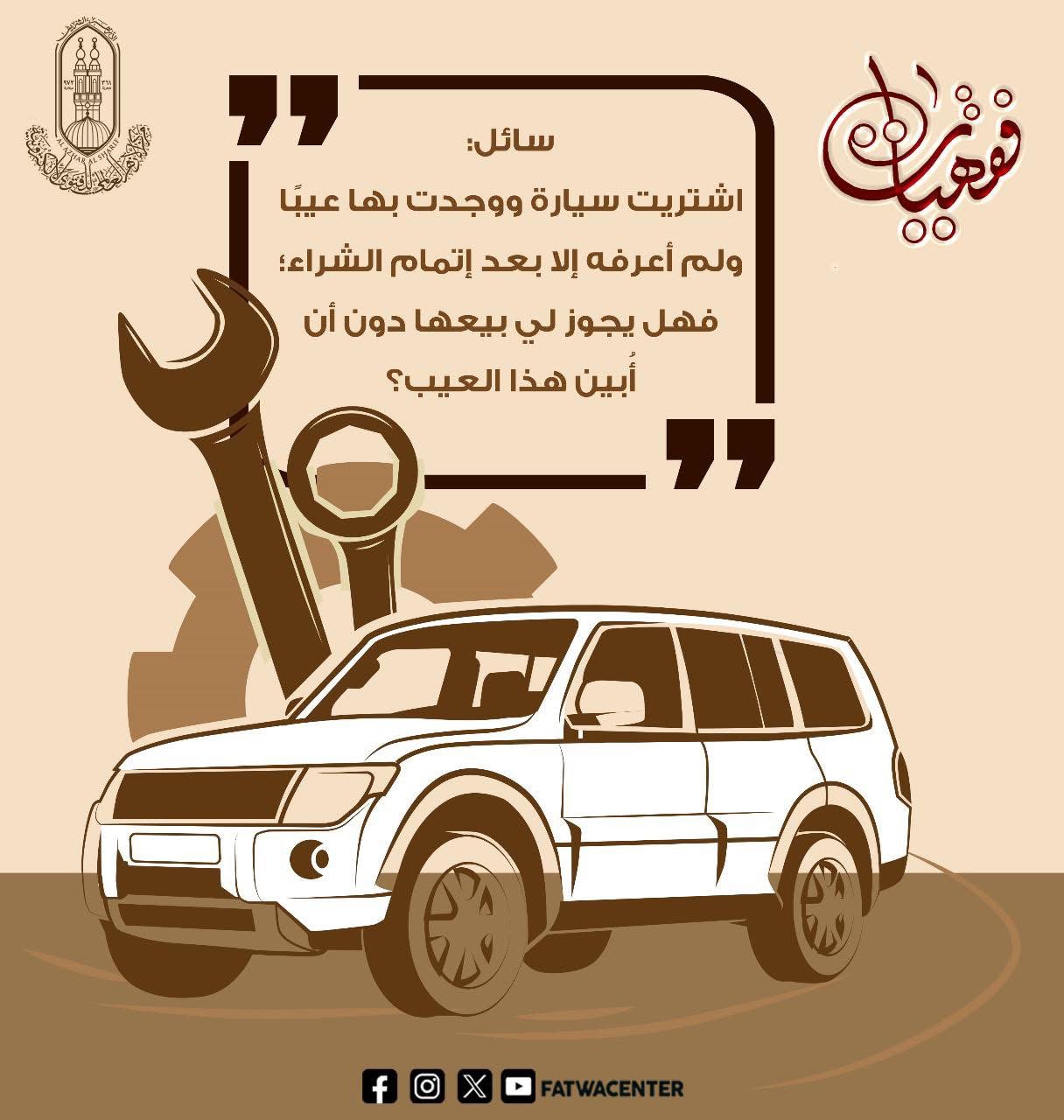 سائل: اشتريت سيارة ووجدت بها عيبًا ولم أعرفه إلا بعد إتمام الشراء؛ فهل يجوز لي بيعها دون أن أُبين هذا العيب؟