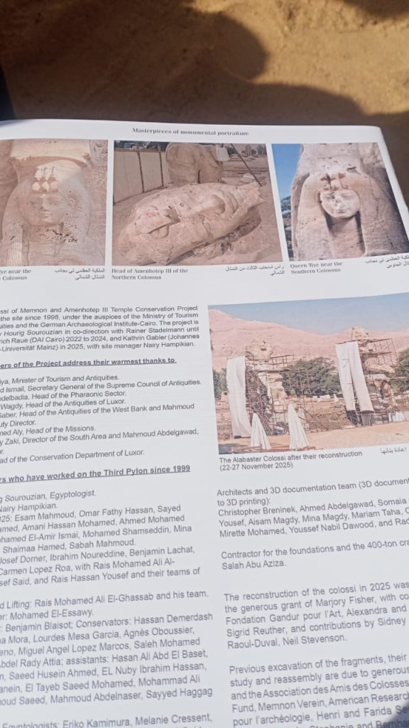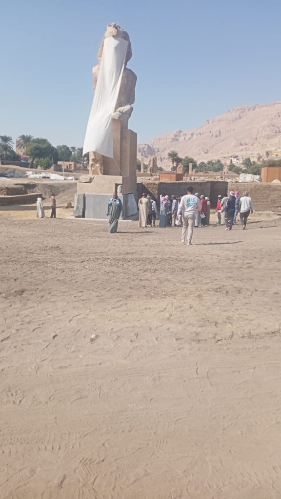 بالصور.. افتتاح نصب تمثالي الملك امنحتب الثالث في الصرح الثالث ضمن مشروع حفظ تماثيل ممنون ومعبد أمنحتب الثالث