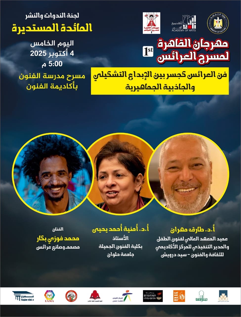 بعد مرور خمسة أسابيع على انطلاقها، أسدل «مهرجان القاهرة لمسرح العرائس» الستار عن المائدة المستديرة الأخيرة والتي أقيمت تحت عنوان «فن العرائس كجسر بين الابداع التشكيلي والجاذبية الجماهيرية» ضمن فعاليات الدورة الأولى من المهرجان.