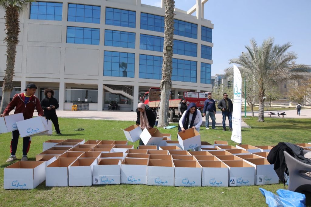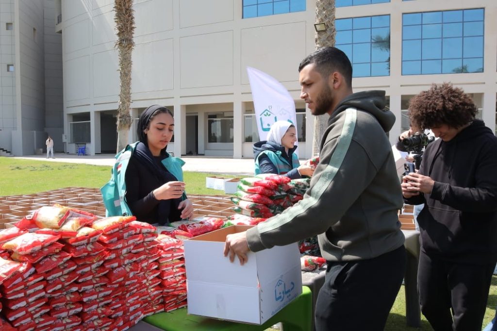 في إطار تعزيز ثقافة المشاركة المجتمعية لدى طلاب جامعة النيل، وإيمانًا بفلسفة الجامعة التي تقوم على ربط التعليم الأكاديمي بالمسؤولية المجتمعية، شارك عدد كبير من طلاب الجامعة في فعالية تطوعية لتعبئة كراتين المواد الغذائية بالتعاون مع مؤسسة ديارنا للتنمية وذلك داخل حرم الجامعة.