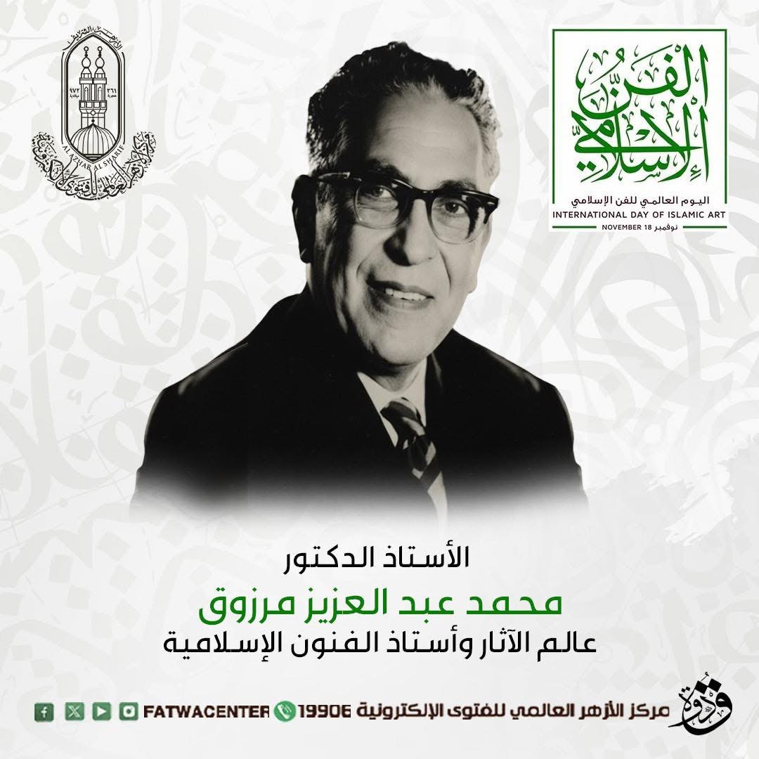 في اليوم العالمي للفن الإسلامي .. مركز الأزهر العالمي للفتوى الإلكترونية يعرف بعلم من أعلامه: د. محمد عبد العزيز مرزوق.