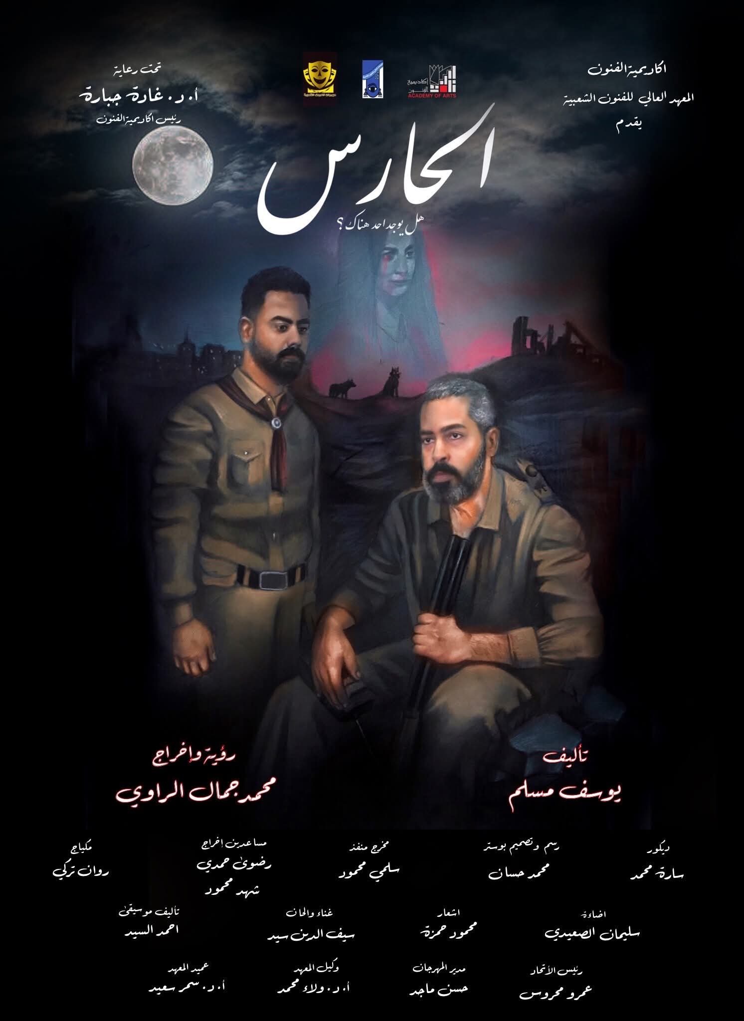 عرض على مسرح د. عاطف عوض بمدرسة الفنون أكاديمية الفنون ،العرض المسرحي السادس بعنوان «الحارس »، من إخراج محمد جمال الراوي ، وذلك ضمن فاعليات